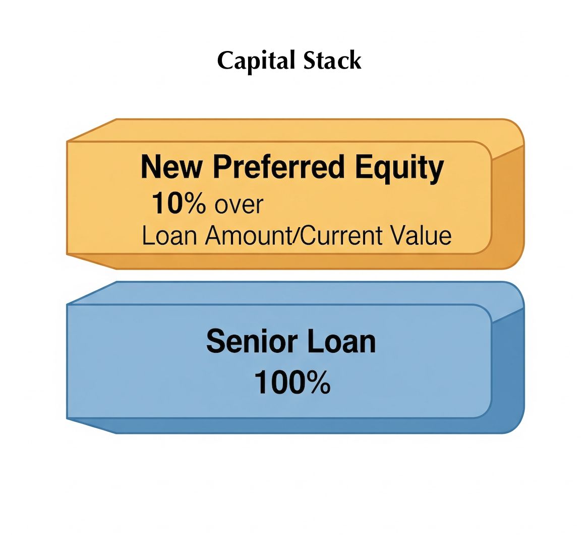 This shows the senior (existing) loan as 100% of the current value of the property.